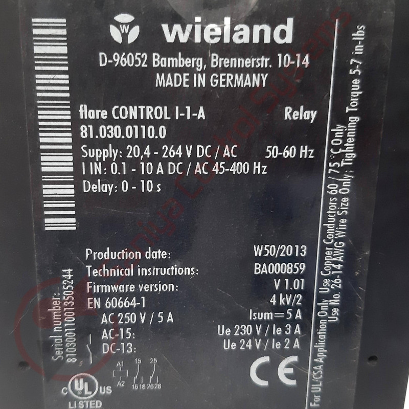 WIELAND D-96052 FLARE CONTROL I-1-A RELAY
